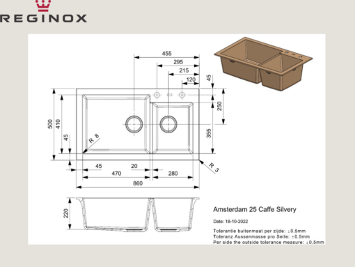 Ngoài ra, Chậu đá Reginox Amsterdam 25 R31100 còn được thiết kế để lắp đặt dương, với kích thước cắt đá (DxR) là 834 x 474 mm. Điều này có nghĩa là chậu có thể được dễ dàng và chính xác lắp đặt vào bề mặt đá mà không gây khó khăn trong quá trình cắt và lắp đặt