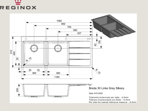 Kích thước chậu đá Reginox Breda 30 R33760 và kích thước lắp đặt