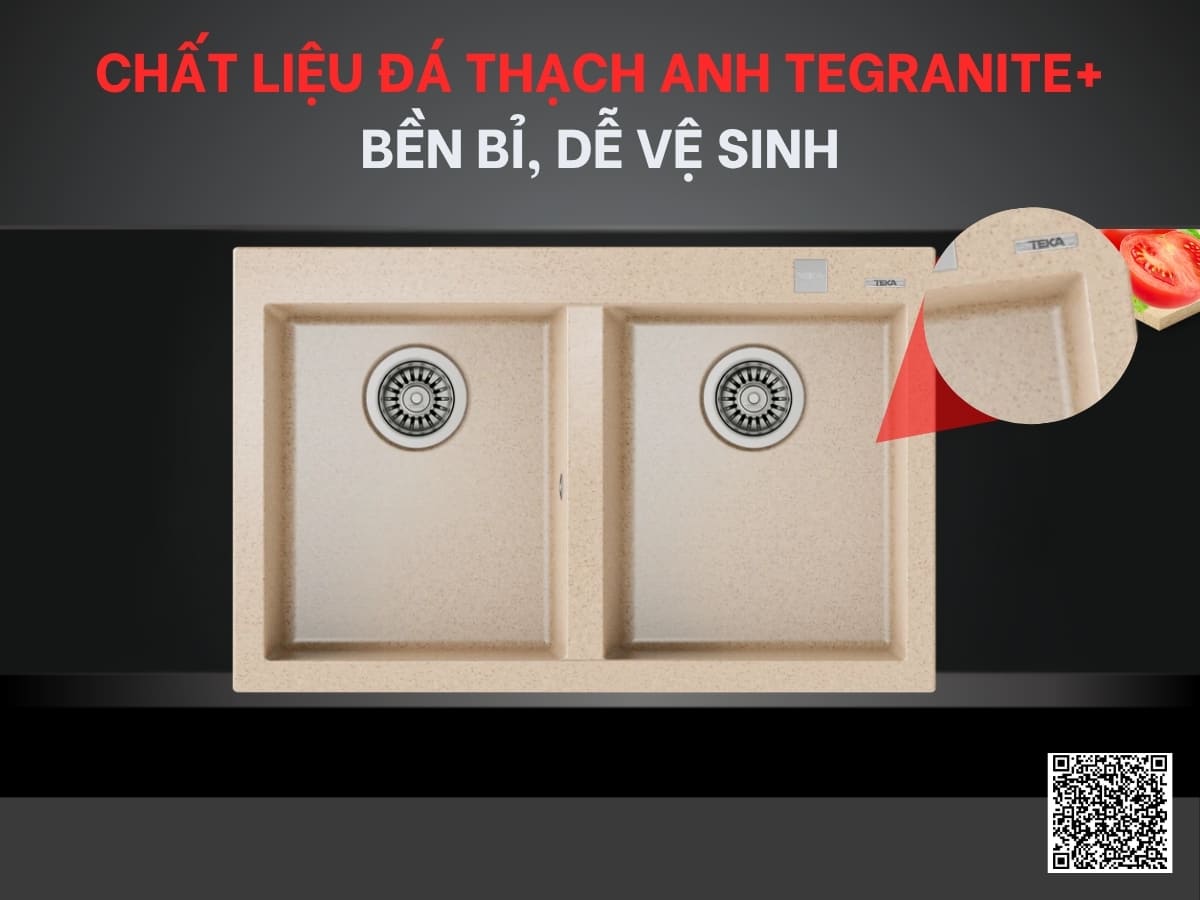 Chậu đá Teka ForSquare 2B 790 Beige 115260016 được làm từ chất liệu Tegranite+ độc quyền, với thành phần gồm 80% là bột đá thạch anh tự nhiên kết hợp cùng nhựa acrylic cao cấp. Sự kết hợp này tạo ra một vật liệu cứng cáp, sở hữu nhiều đặc tính ưu việt về cả tính thẩm mỹ lẫn độ bền sử dụng. Đặc biệt, bề mặt chậu với màu be tinh tế không chỉ mang lại vẻ đẹp nhẹ nhàng, hiện đại mà còn là điểm nhấn sang trọng, dễ dàng phối hợp với nhiều phong cách nội thất bếp khác nhau, góp phần tăng thêm đẳng cấp cho gian bếp.