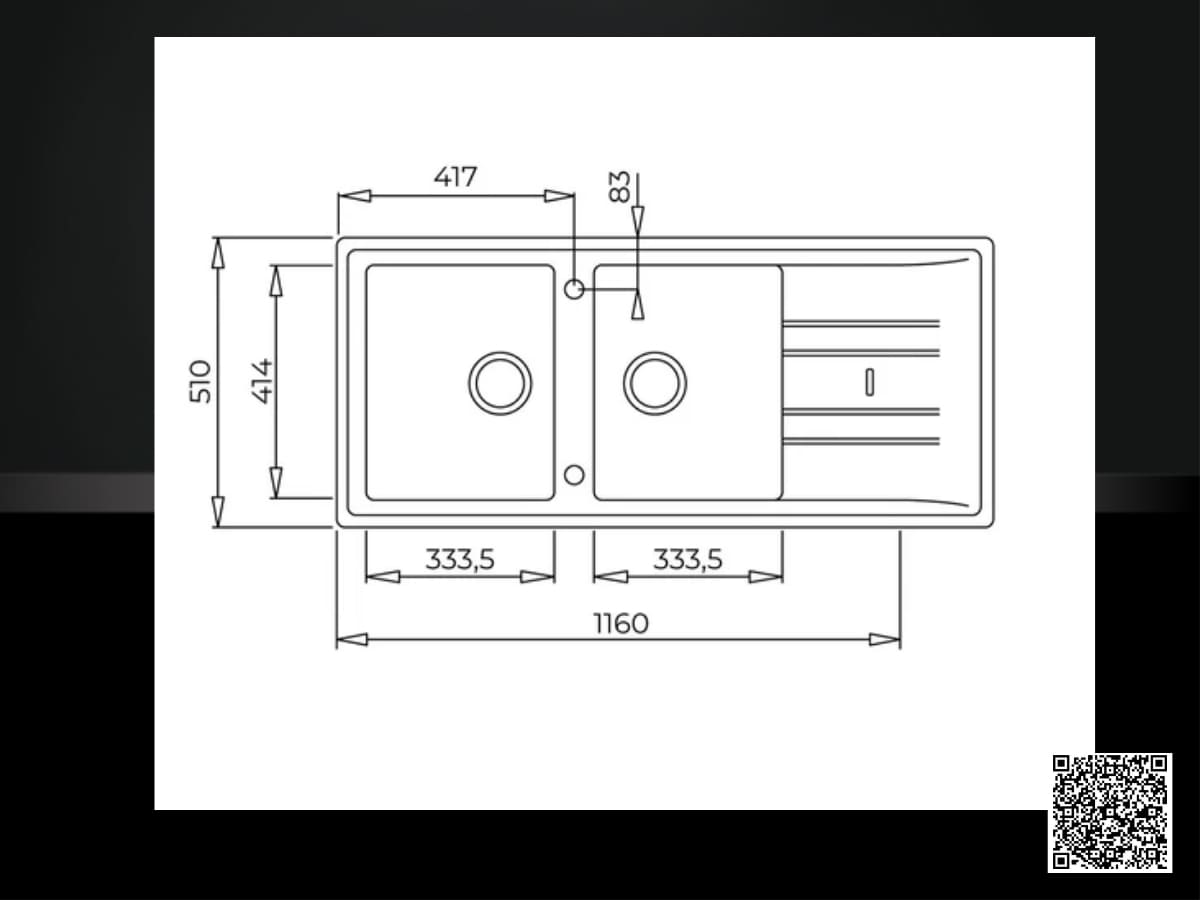 Kích thước Chậu đá Teka Stone 80 B-TG 2B 1D BLACK 115400011 và kích thước lắp đặt