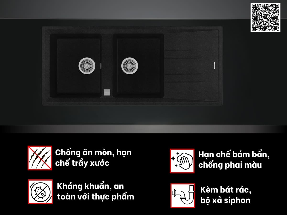 Ưu điểm nổi bật của Chậu đá Teka Stone 80 B-TG 2B 1D BLACK 115400011