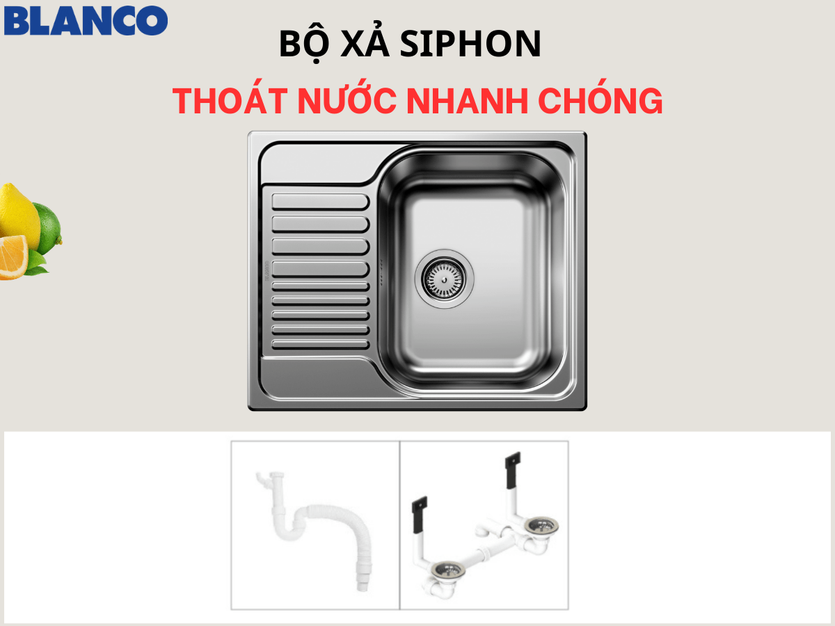 Chậu Inox Blanco Tipo 45 S Mini đi kèm bộ xả siphon được thiết kế tối tối ưu với khả năng dẫn thoát nước thải cực nhanh và hiệu quả, ngăn tình trạng ứ đọng, tắc nghẽn trong đường ống và trào ngược nước, đảm bảo vệ sinh cho đường ống. Từ đó cũng giảm hiệu quả việc hình thành mùi hôi từ đường ống.