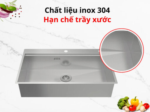 Chậu inox Hafele WS R0 HS24-SSN1S-8650 được làm từ vật liệu inox 304 có đặc tính chống gỉ sét, chống ăn mòn, có thể chịu được tác động từ môi trường nhà bếp mà không lo bị gỉ sét hay mài mòn ảnh hưởng đến tính thẩm mỹ và chất lượng của chậu. Bên cạnh đó là khả năng hạn chế trầy xước, bảo vệ bề mặt chậu sáng đẹp bền lâu.