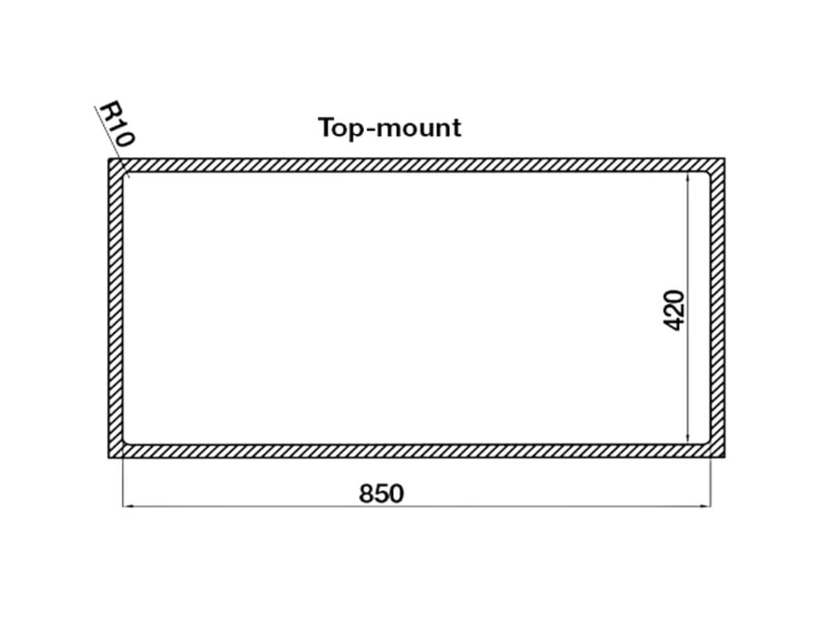 - Kích thước lắp nổi: 850D x 420R mm