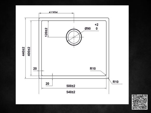 Kích thước chậu inox Hafele HS25-SSN1S-540 (567.24.480) và kích thước lắp đặt