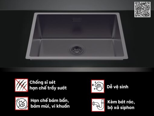 Bát rác với đường kính lớn, tăng hiệu quả thoát nước. Chất liệu inox đảm bảo chất lượng và độ bền. Bên cạnh đó là bộ xả siphon thông minh với thiết kế cải tiến, giúp tăng cường hiệu quả dẫn thoát nước thải, chống tắc nghẽn và ngăn hình thành mùi hôi khó chịu.
