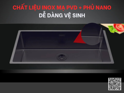 • Chất liệu inox mạ PVD + phủ Nano