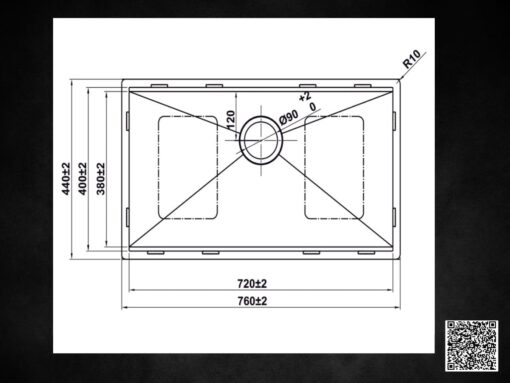 Kích thước chậu inox Hafele HS25-SSN1S-7644 (567.24.486) và kích thước lắp đặt