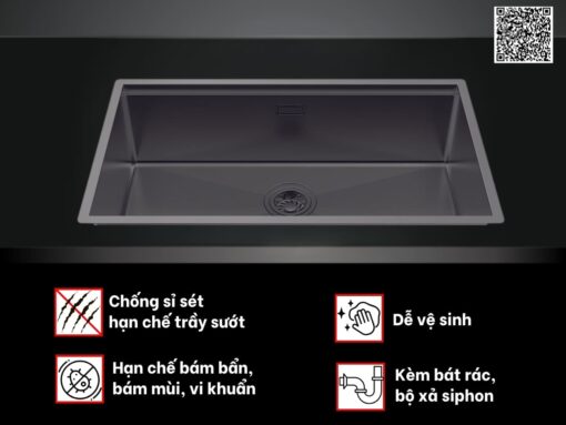 Bát rác với đường kính lớn, tăng hiệu quả thoát nước. Chất liệu inox đảm bảo chất lượng và độ bền. Bên cạnh đó là bộ xả siphon thông minh với thiết kế cải tiến, giúp tăng cường hiệu quả dẫn thoát nước thải, chống tắc nghẽn và ngăn hình thành mùi hôi khó chịu.