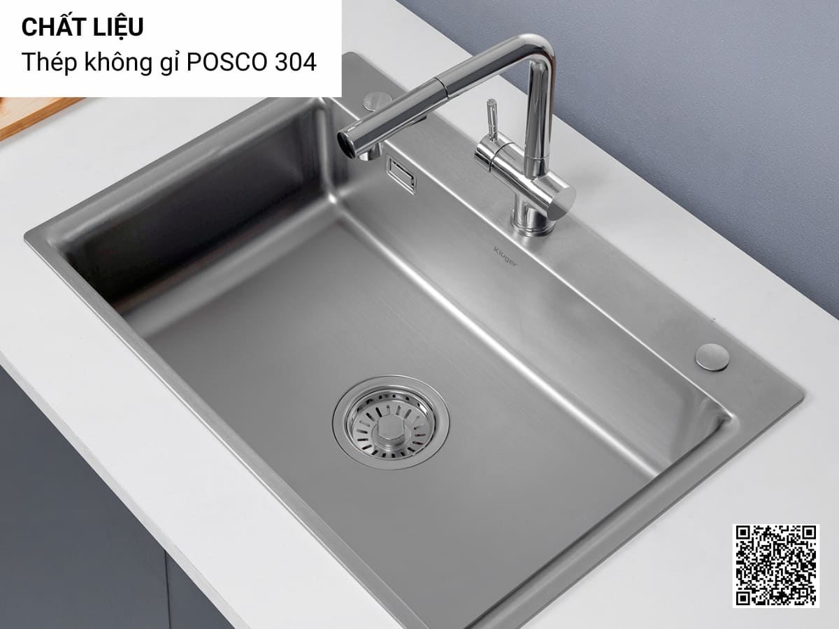 Chậu inox Kluger KF8121S – S75 được làm từ thép không gỉ POSCO 304 cao cấp, sản xuất theo công nghệ ép khuôn liền khối hiện đại, mang đến độ bền vượt trội. Bề mặt Brushed – Đánh bóng (Màu bạc / Silver) giúp dễ dàng vệ sinh, đảm bảo chậu luôn sáng đẹp như mới sau thời gian dài sử dụng.