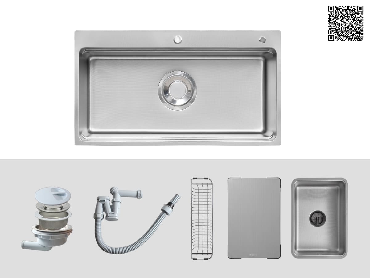 Chậu inox Kluger KF8850FS Plus đi kèm bộ phụ kiện cao cấp và tiện lợi:
