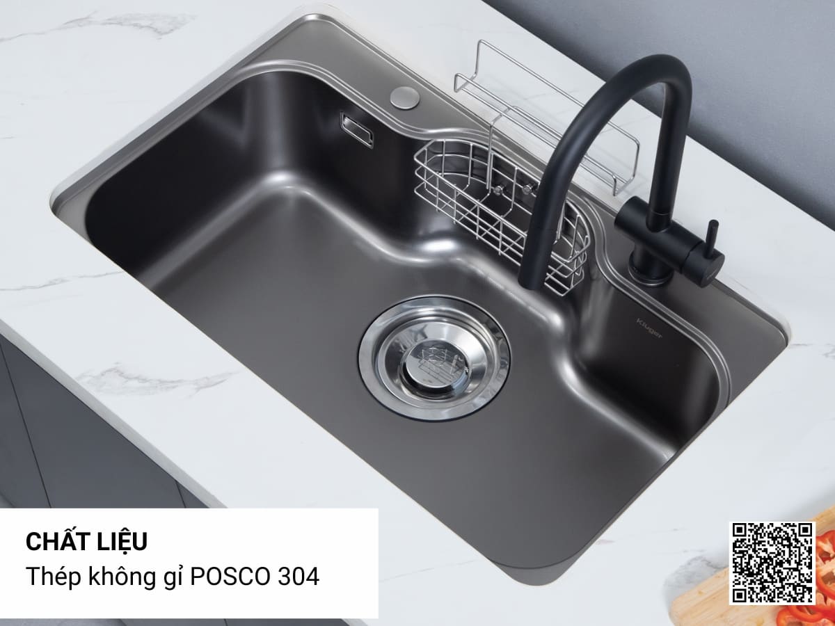 Chất liệu thép không gỉ POSCO 304 và bề mặt LINEN thế hệ mới (Màu đen)
