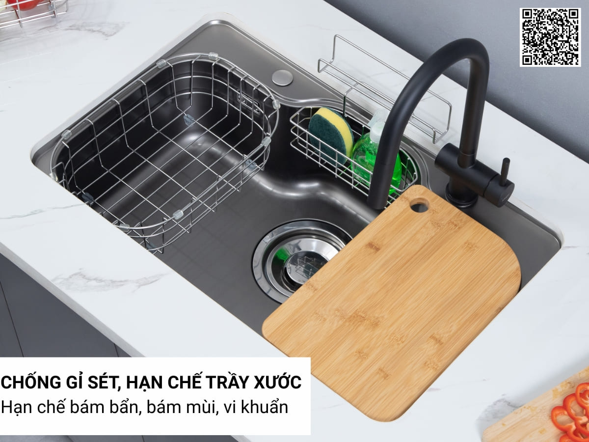 Chậu inox Kluger KT8050FB – S80 Plus được làm từ vật liệu POSCO 304 có đặc tính chống gỉ sét, chống ăn mòn tối ưu. Bề mặt LINEN thế hệ mới (Màu đen mạ PVD) giúp hạn chế tối đa trầy xước, bảo vệ bề mặt chậu luôn sáng đẹp bền lâu.