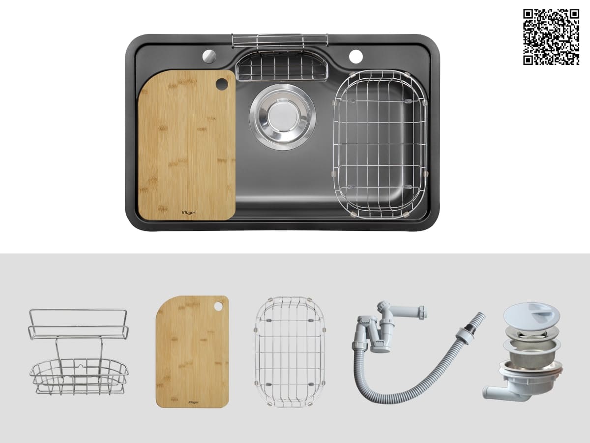 Chậu inox Kluger KT8050FB – S80 Plus đi kèm bộ phụ kiện cơ bản và tiện lợi:
