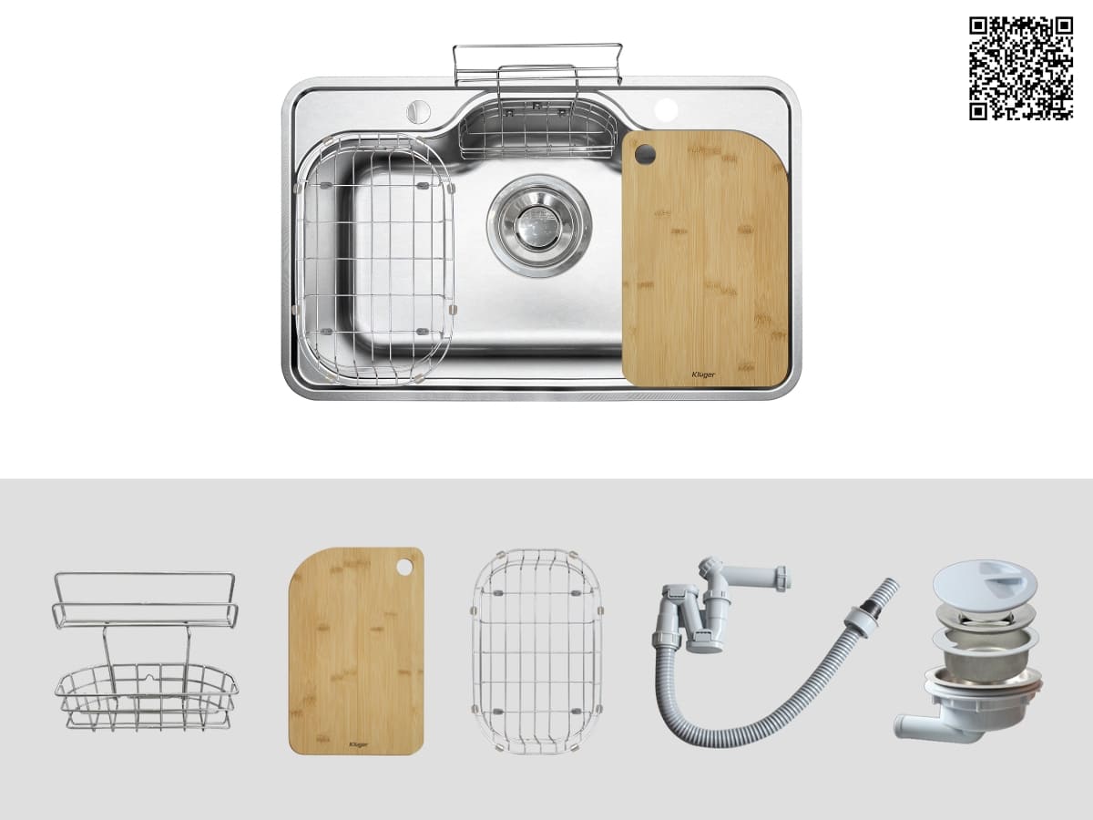 Chậu inox Kluger KT8050SL Plus đi kèm bộ phụ kiện cao cấp và tiện lợi: