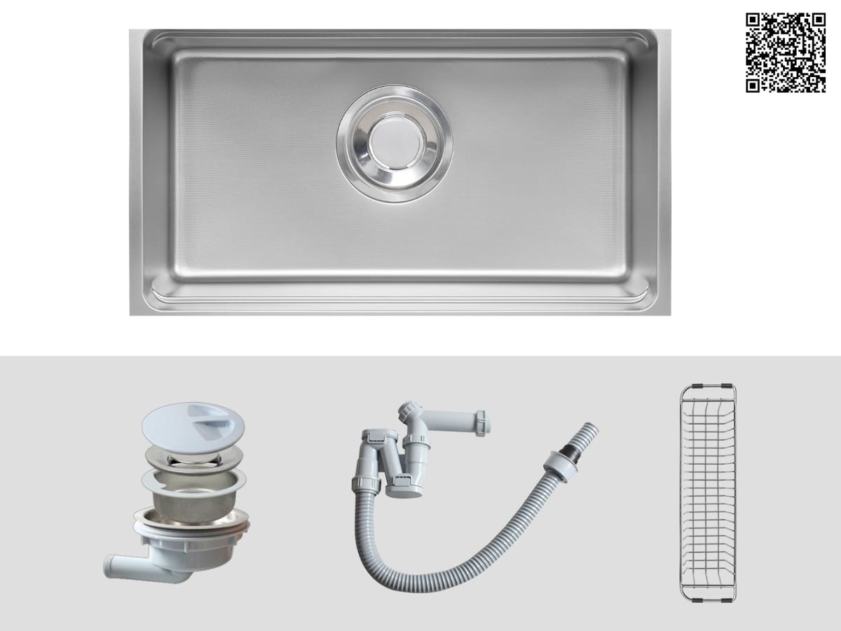 Chậu inox Kluger KU7844FS Basic thuộc dòng chậu đơn trong bộ sưu tập MOD SERIES với kích thước 780D x 445R mm, lòng chậu sâu 220mm giúp bạn thoải mái rửa nồi lớn, xửng hấp hay sơ chế lượng lớn thực phẩm mà không sợ bị văng nước. Chậu được làm từ chất liệu thép không gỉ POSCO 304 cao cấp, với khả năng chống hoen gỉ, chống ăn mòn, an toàn sức khoẻ và độ bền dài lâu.