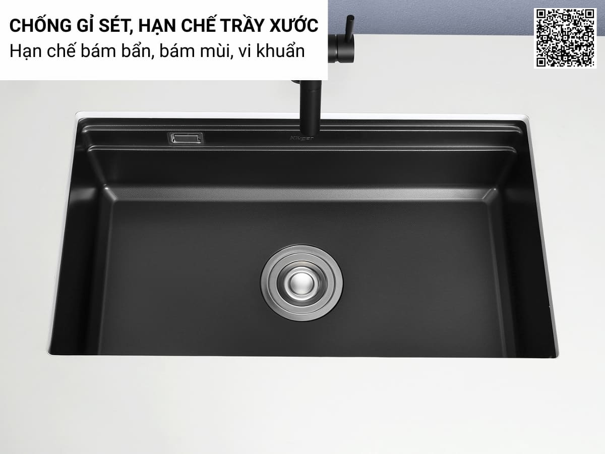 Chậu Inox Kluger KWU8161FB – S76 Plus được làm từ chất liệu thép không gỉ POSCO 304 cao cấp bằng công nghệ ép khuôn liền khối. Bề mặt LINEN dập nổi thế hệ mới không chỉ chống xước vượt trội mà còn có màu đen tinh tế, tạo điểm nhấn sang trọng và dễ dàng phù hợp với nhiều không gian nội thất.