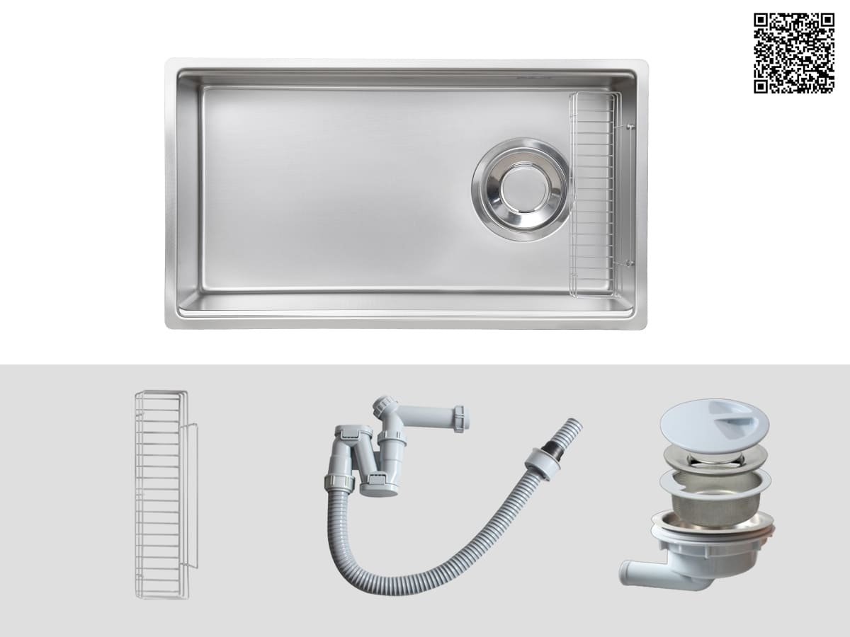 Chậu inox Kluger KY8045SL Basic đi kèm bộ phụ kiện cơ bản và tiện lợi: – Bát rác Kluger và bộ xả Siphon giúp tăng cường hiệu quả dẫn thoát nước thải, chống tắc nghẽn và ngăn hình thành mùi hôi khó chịu. – Giỏ inox để đồ.