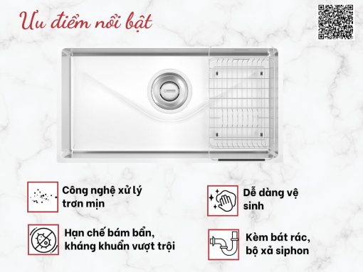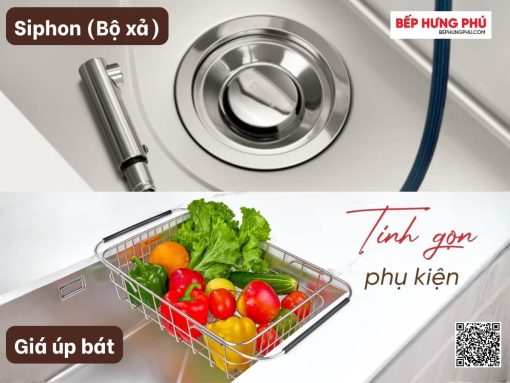 Thiết kế 1 hố sang trọng, tích hợp phụ kiện tiện lợi