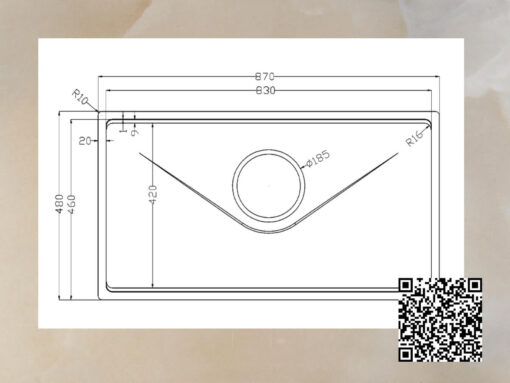 Chậu inox Konox TARI 8748SR thiết kế chậu đơn với kích thước chậu 870D x 480R mm và kích thước bồn rửa 830D x 440R mm. Độ sâu bồn 220mm giúp thoải mái sử dụng mà không lo bắn nước ra ngoài.