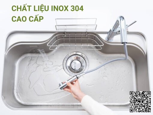 Đặc biệt, chậu được thiết kế gờ hạ bậc hiện đại, có thể tích hợp phụ kiện như thớt nhựa, rổ úp chén, rổ phụ để tăng thêm tiện lợi cho quá trình rửa dọn, có thể cắt thực phẩm và hong ráo ngay trên chậu mà không tốn thêm không gian trên bàn bếp.