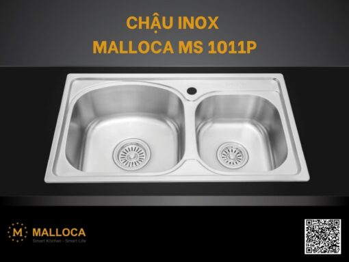 Chậu Inox Malloca MS 1011P thiết kế chậu 2 hố lệch, không bàn, kích thước 780D x 430R mm, sâu 210 mm và độ dày thành chậu 0.8 mm. Chất liệu inox 304 cao cấp với đặc tính chống gỉ sét, chống ăn mòn, độ bền cao. Sản phẩm đi kèm bát rác inox và bộ xả siphon ngăn mùi hiệu quả.