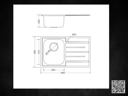 Chậu Inox Malloca MS 1017 NEW thiết kế chậu đơn 1 hố có bàn, kích thước 800D x 500R mm, sâu 200 mm và độ dày thành chậu 0.8 mm. Chậu thiết kế lắp nổi với kích thước khoét đá 778D x 478R mm. Chất liệu inox 304 cao cấp với đặc tính chống gỉ sét, chống ăn mòn, độ bền cao. Sản phẩm đi kèm bát rác inox và bộ xả siphon ngăn mùi hiệu quả.