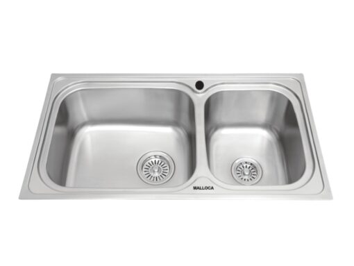 Chậu inox Malloca MS 2025 thiết kế chậu đôi không bàn với kích thước chậu 930D x 500R mm và kích thước lòng chậu lần lượt là :