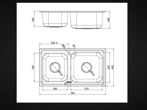 Chậu inox Malloca MS 2076EP thiết kế chậu đôi không bàn với kích thước chậu 760D x 430R mm và kích thước 2 bồn rửa 290D x 330R mm và 370D x 350R mm, độ sâu 200mm. Với thiết kế chậu đôi, bạn có thể sử dụng đồng thời 2 chậu để rửa rau củ hoặc chén bát, xoong nồi cùng lúc, đảm bảo tiện lợi và thoải mái.