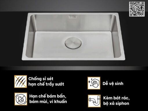 Bát rác với đường kính lớn, tăng hiệu quả thoát nước. Chất liệu inox đảm bảo chất lượng và độ bền. Bên cạnh đó là bộ xả siphon thông minh với thiết kế cải tiến, giúp tăng cường hiệu quả dẫn thoát nước thải, chống tắc nghẽn và ngăn hình thành mùi hôi khó chịu.
