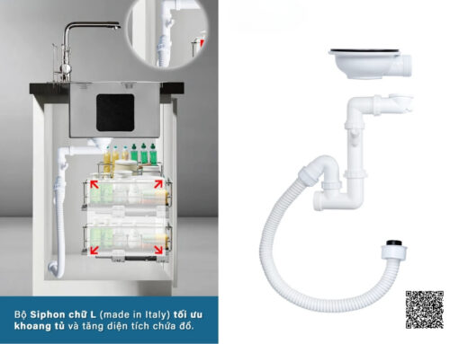Chậu inox Nobinox Artinox Titanium NA885U được trang bị bộ xiphong nhập khẩu 100% từ Italy, sản xuất bằng nhựa cao cấp an toàn, có khả năng chống thấm, chống côn trùng cắn phá và đặc biệt là ngăn mùi hôi từ đường ống hiệu quả.
