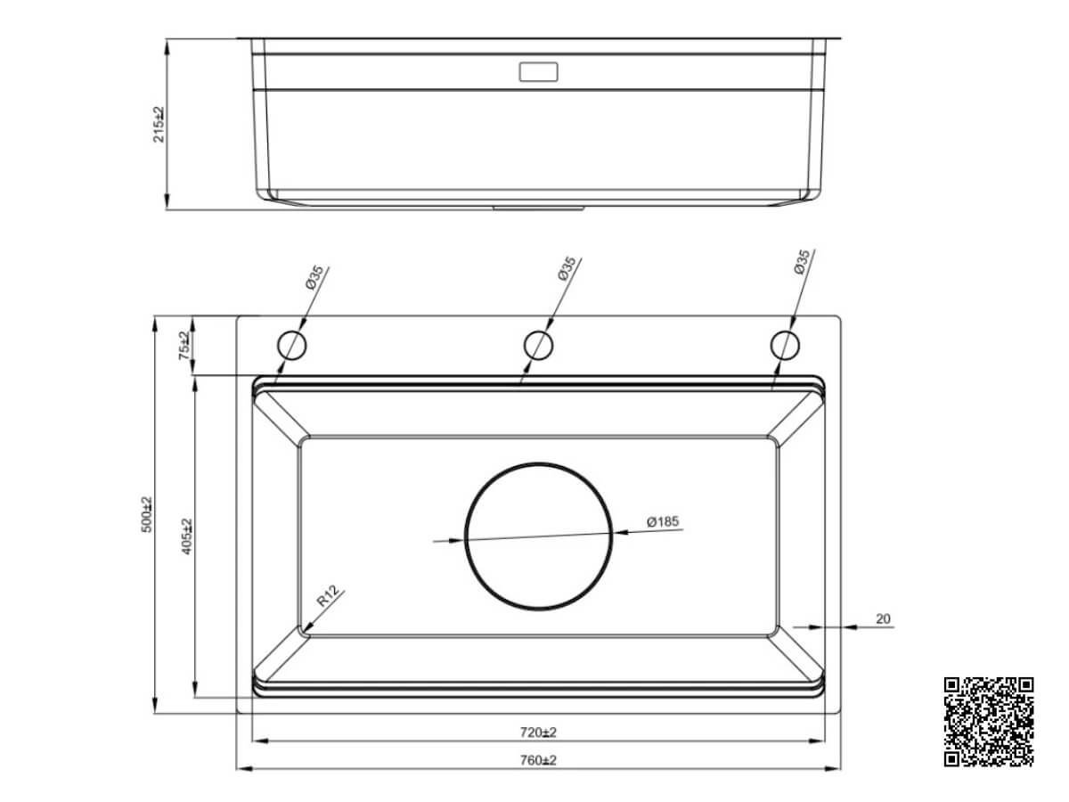 Kích thước và lắp đặt chậu inox Nobinox Lira NJ560D