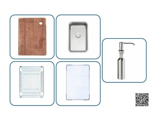 Điểm đặc biệt nằm ở gờ hạ bậc thông minh, cho phép tích hợp linh hoạt các phụ kiện như rổ lọc, khay úp hay thớt trượt, mang đến sự tiện nghi và tối ưu không gian làm việc. Thiết kế này không chỉ nâng cao tính thẩm mỹ mà còn giúp việc chuẩn bị, sơ chế thực phẩm và vệ sinh trở nên dễ dàng, nhanh gọn hơn.