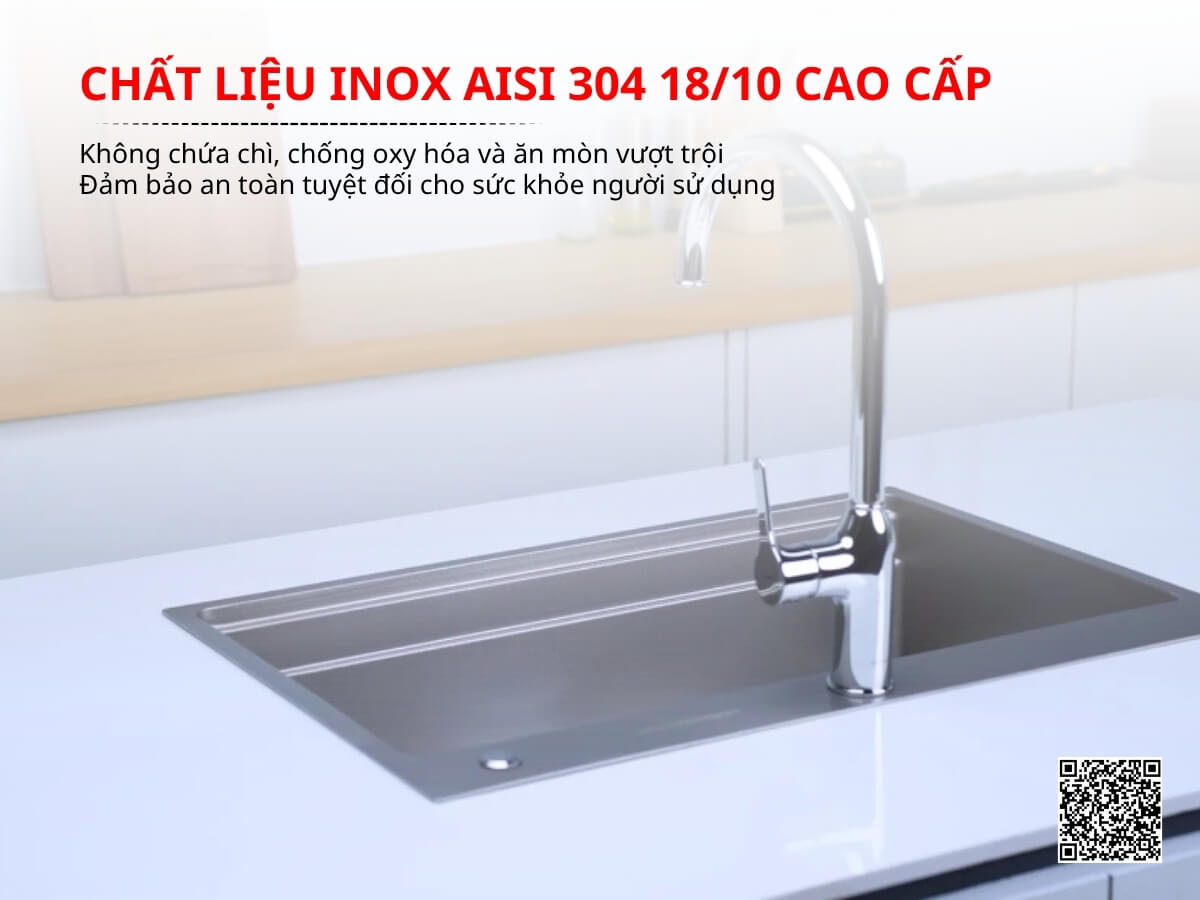 Chất liệu inox 304 cao cấp, bền bỉ và an toàn tuyệt đối