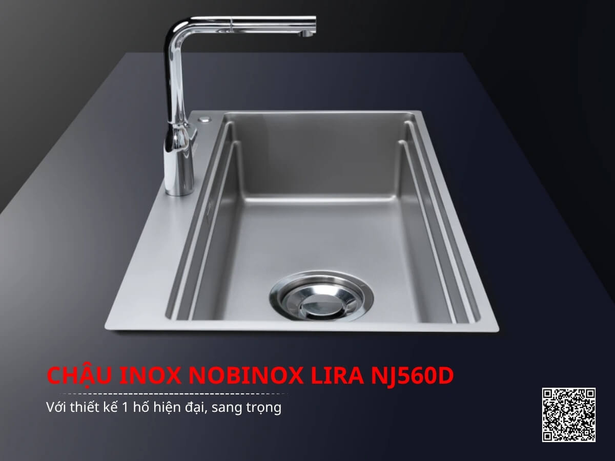 Chậu inox Nobinox Lira NJ560D với thiết kế 1 hố hiện đại, sang trọng