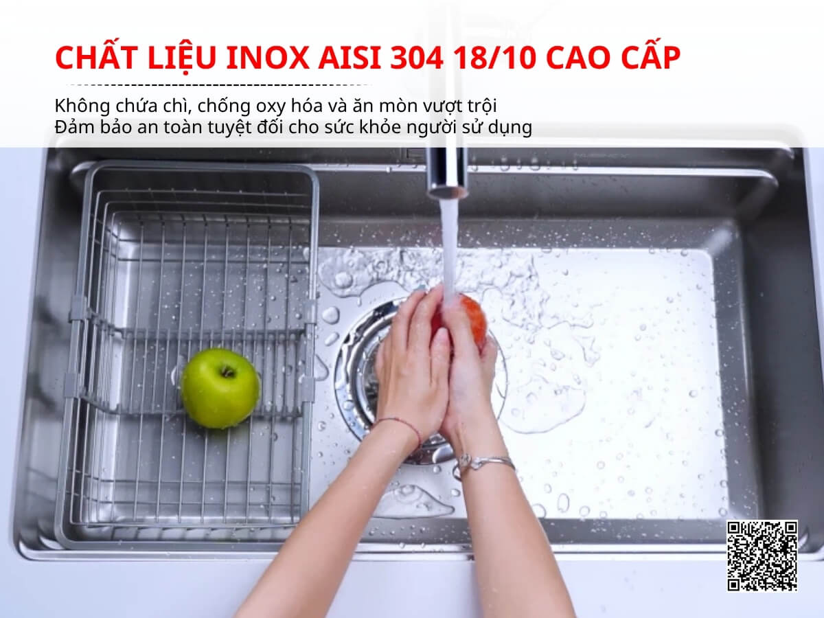 Chất liệu inox 304 cao cấp, bền bỉ và an toàn tuyệt đối