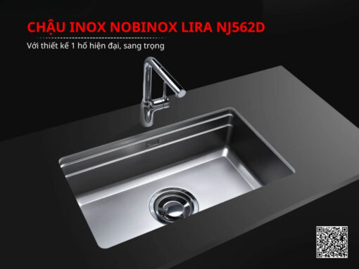Chậu inox Nobinox Lira NJ562D với thiết kế 1 hố hiện đại, sang trọng
