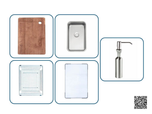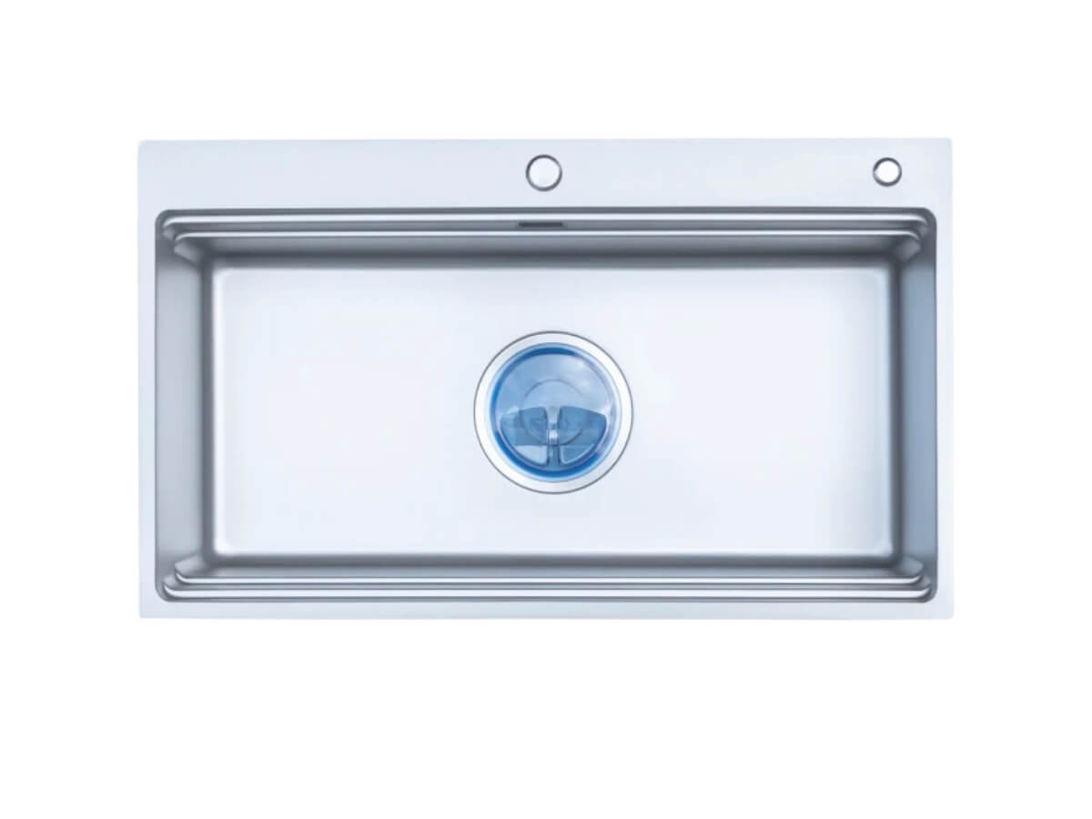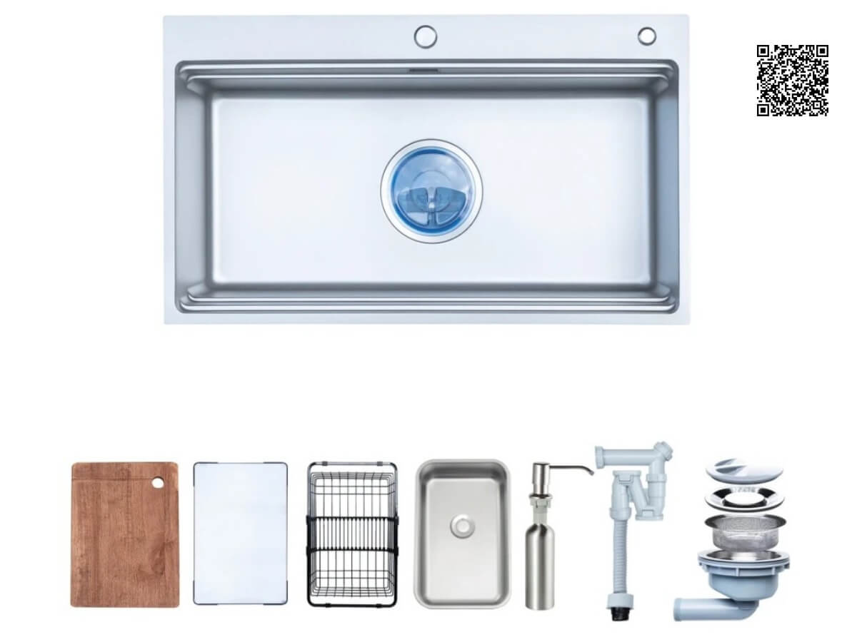 Điểm đặc biệt nằm ở gờ hạ bậc thông minh, cho phép tích hợp linh hoạt các phụ kiện như rổ lọc, khay úp hay thớt trượt, mang đến sự tiện nghi và tối ưu không gian làm việc. Thiết kế này không chỉ nâng cao tính thẩm mỹ mà còn giúp việc chuẩn bị, sơ chế thực phẩm và vệ sinh trở nên dễ dàng, nhanh gọn hơn.
