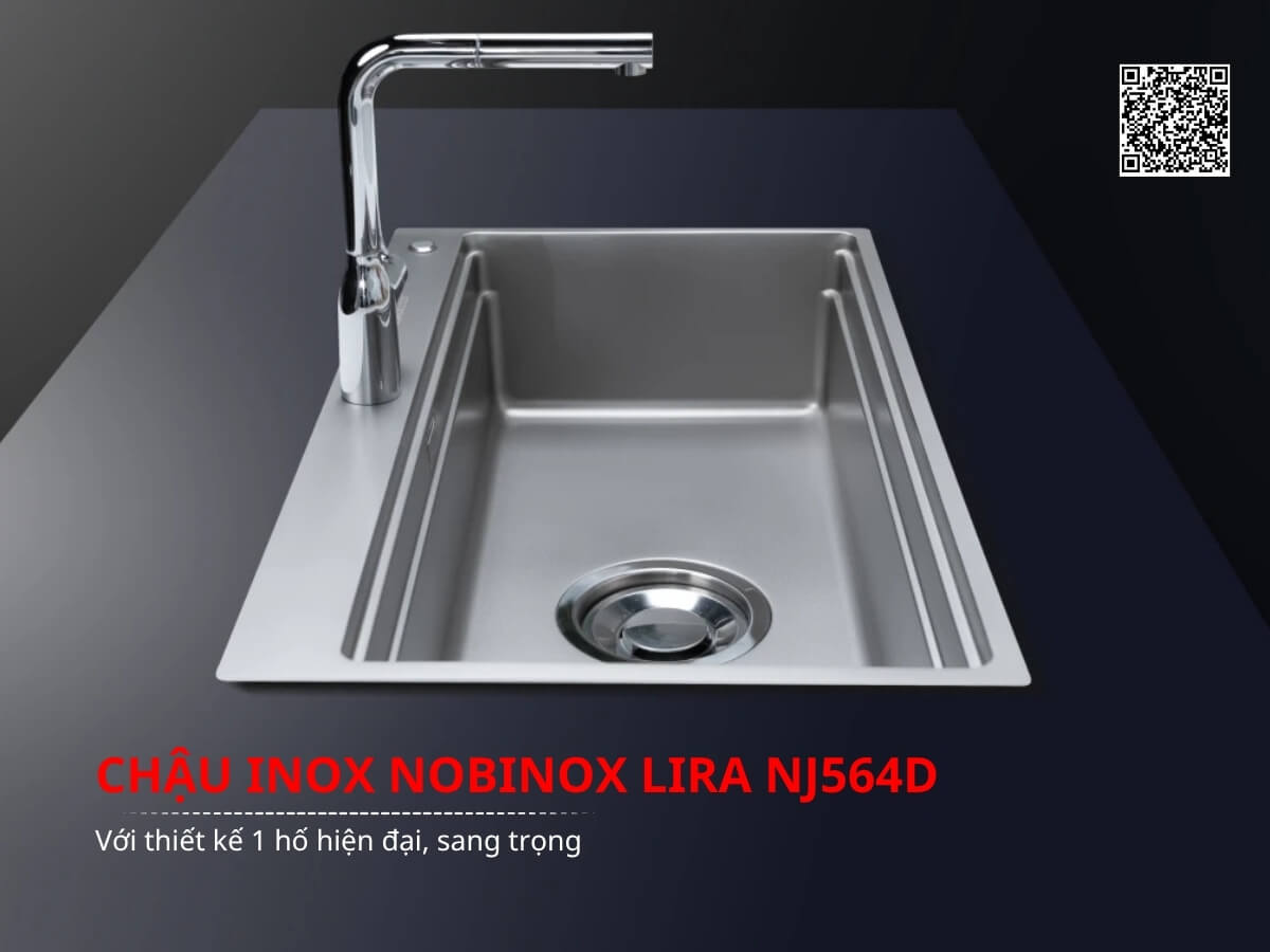 Chậu inox Nobinox Lira NJ564D với thiết kế 1 hố hiện đại, sang trọng