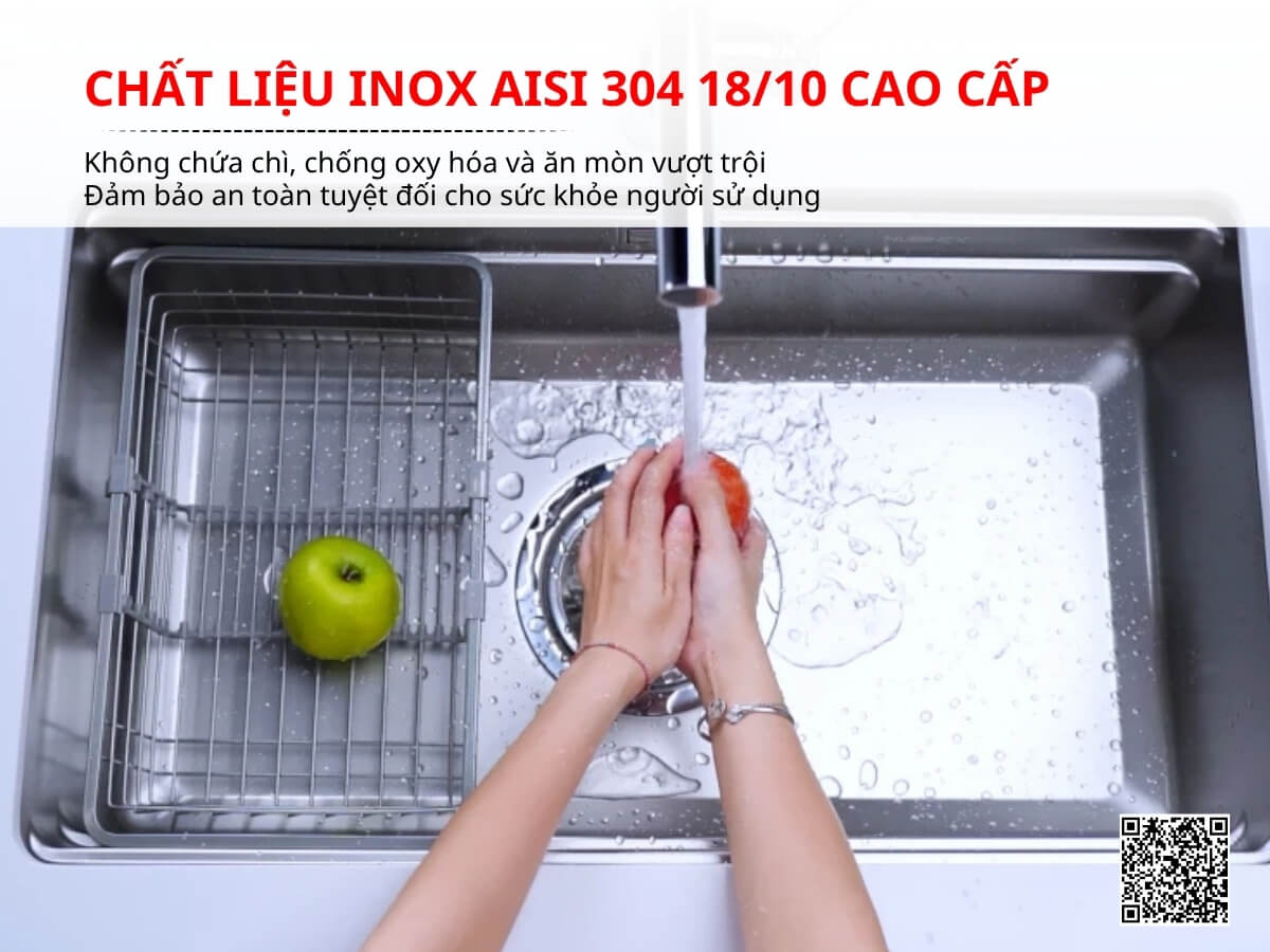 Chất liệu inox 304 cao cấp, bền bỉ và an toàn tuyệt đối