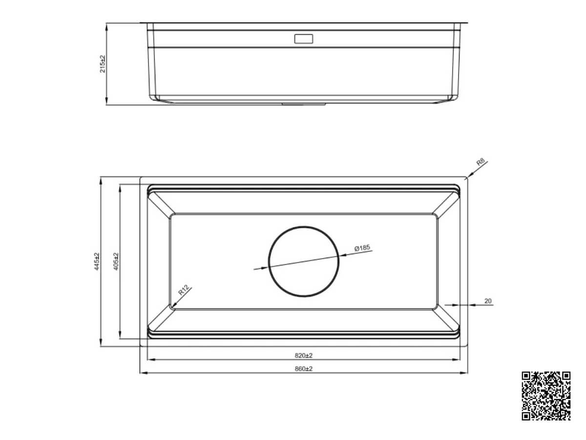 • Kích thước chậu: 860D x 445R x 210S mm