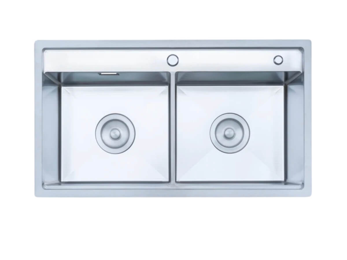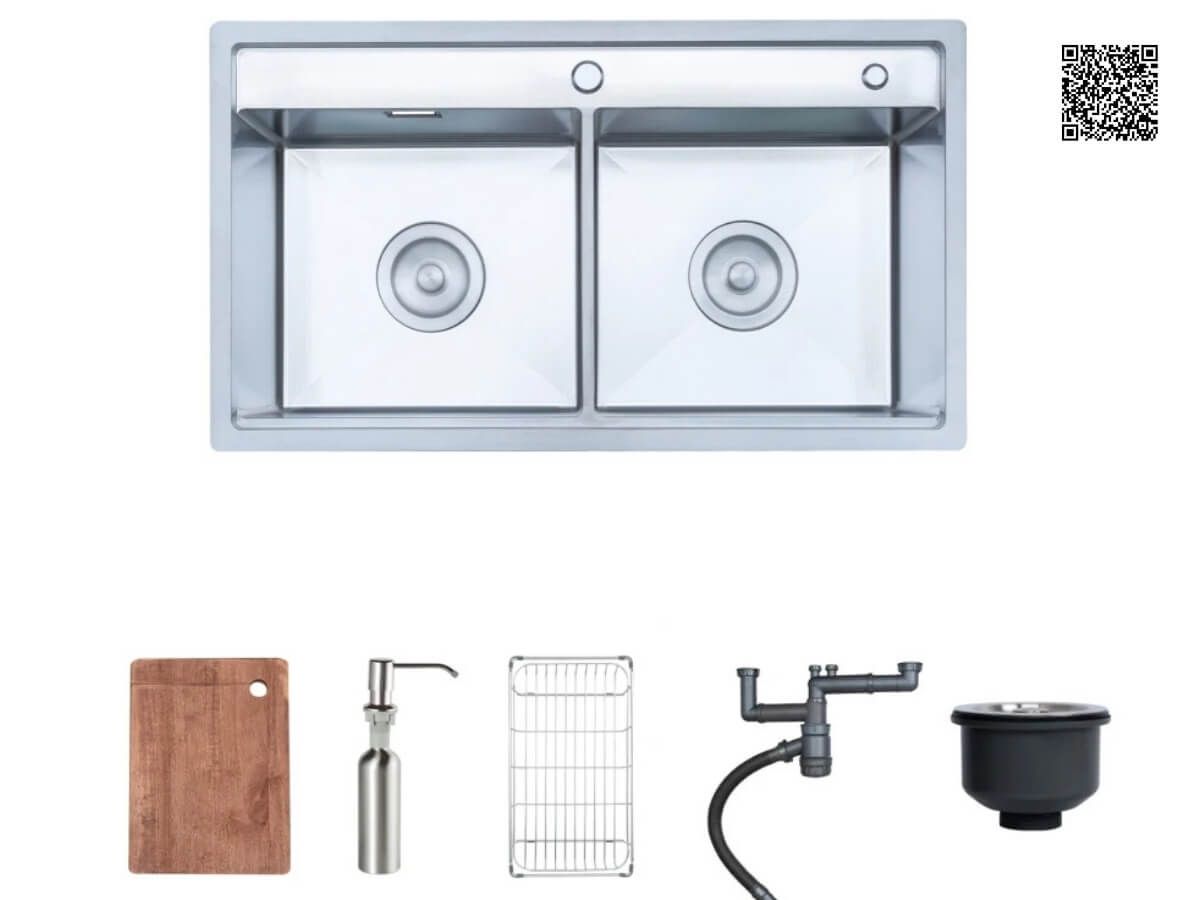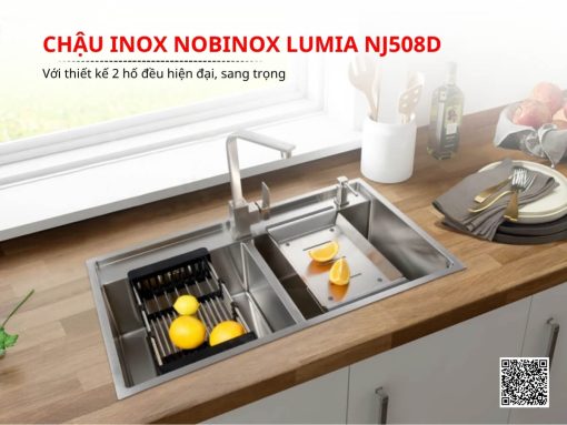 Chậu inox Nobinox Lumia NJ508D với thiết kế 2 hố hiện đại, sang trọng