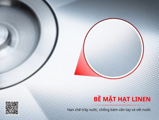 Bề mặt chậu inox Nobinox Lumia NJ508D được xử lý bằng công nghệ hạt Linen tiên tiến, giúp hạn chế trầy xước, mài mòn và chống bám vân tay, nhờ đó chậu luôn giữ được vẻ sáng mới lâu dài. Bề mặt mịn màng còn giúp vệ sinh nhanh chóng, tiết kiệm thời gian và công sức khi dọn dẹp sau khi nấu nướng.