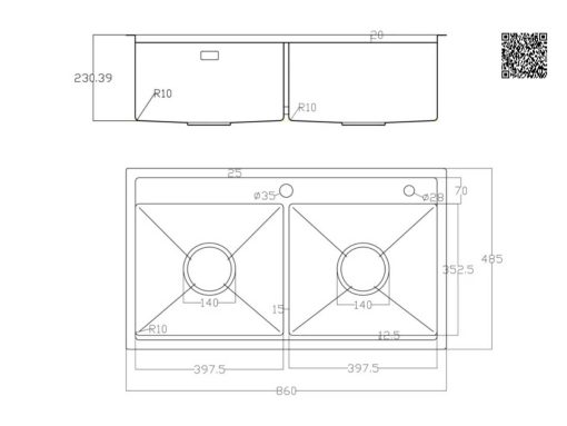 Kích thước và lắp đặt chậu inox Nobinox Lumia NJ508D
