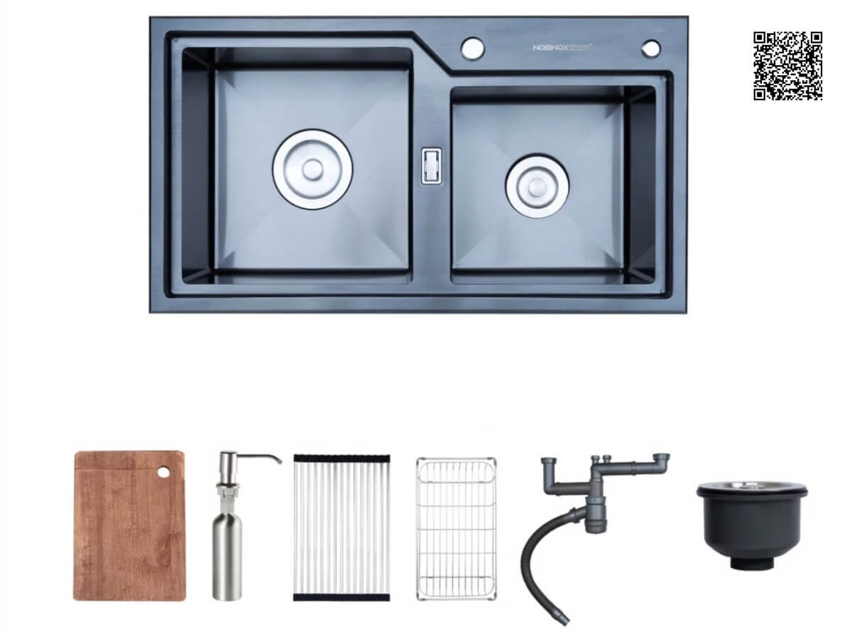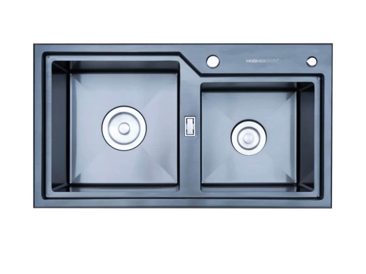 Chậu inox Nobinox Lumia NJ513B với thiết kế 2 hố hiện đại, sang trọng