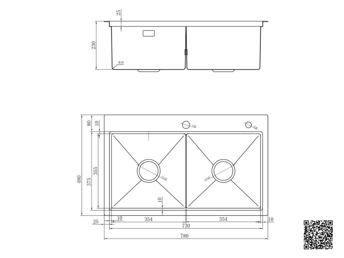 Kích thước và lắp đặt chậu inox Nobinox Lumia NJ522