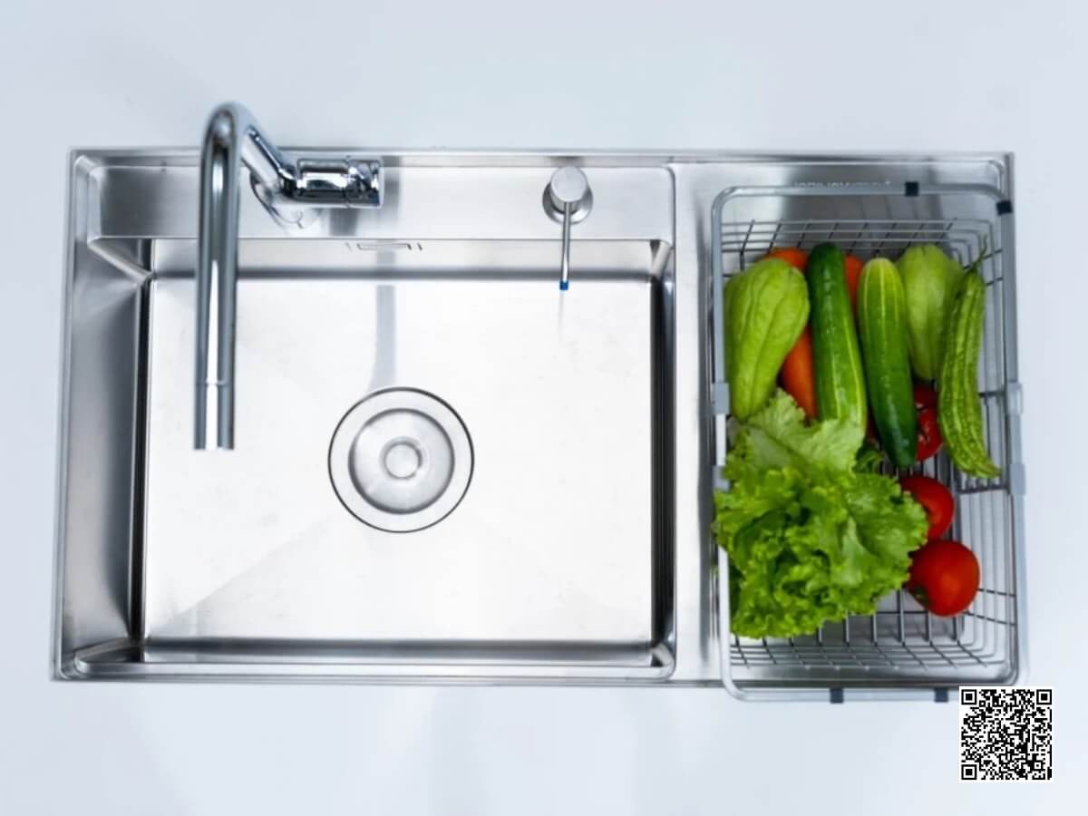 Ngoài ra, chậu còn tích hợp hệ thống xiphong cải tiến, giúp ngăn mùi hôi và đảm bảo dòng chảy ổn định, duy trì vệ sinh và sự dễ chịu cho không gian bếp.