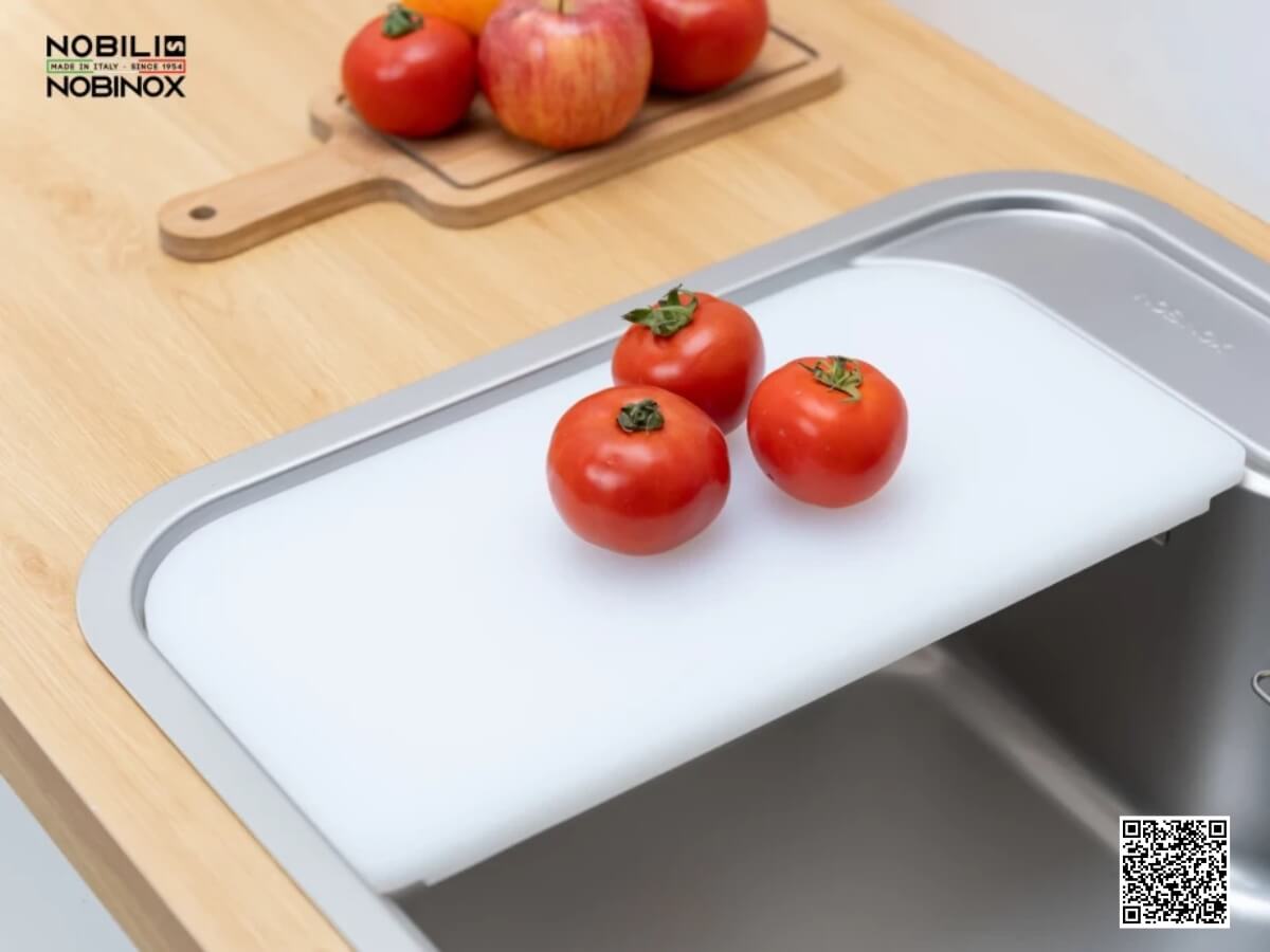 Nhằm mang đến trải nghiệm sử dụng thoải mái nhất, Nobinox Rosa NN975D được trang bị tấm chống ồn bằng cao su tổng hợp dày 3mm ở mặt sau chậu, giúp giảm đáng kể tiếng ồn khi xả nước hoặc va chạm vật dụng. Đồng thời, thiết kế góc lượn bo tròn tinh tế giúp người dùng dễ dàng vệ sinh, không lo bám bẩn ở các góc khuất. Lòng chậu sâu giúp tăng dung tích sử dụng, giảm bắn nước và nâng cao hiệu quả làm việc trong bếp.