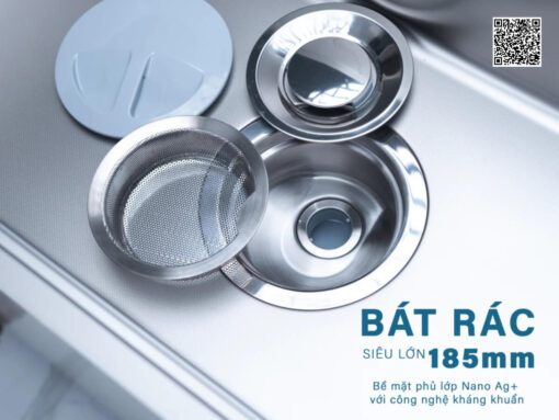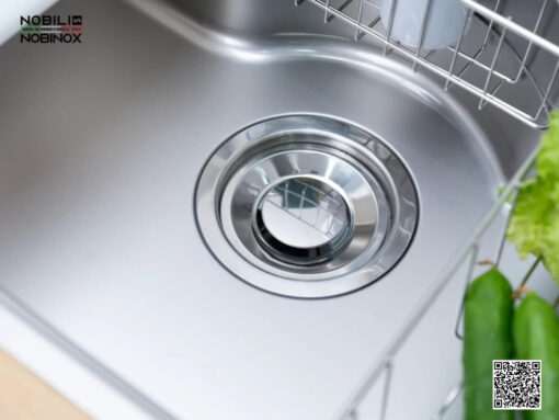 Chậu inox Nobinox Rosa NN975D được trang bị bát rác kích thước lớn 185mm với 3 lớp lọc chống tắc, giúp nước thoát nhanh và hạn chế tối đa tình trạng ứ đọng. Hệ thống xiphong cải tiến cho phép thoát nước nhanh, đồng thời ngăn mùi hôi hiệu quả, giữ cho không gian bếp luôn khô thoáng, sạch sẽ. Phần mặt sau của chậu còn được phủ lớp sơn chống thấm ngược chất lượng cao, ngăn hiện tượng ngưng tụ nước, bảo vệ kết cấu tủ bếp bên dưới.
