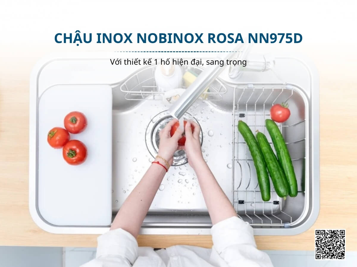 Chậu inox Nobinox Rosa NN975D với thiết kế 1 hố hiện đại, sang trọng